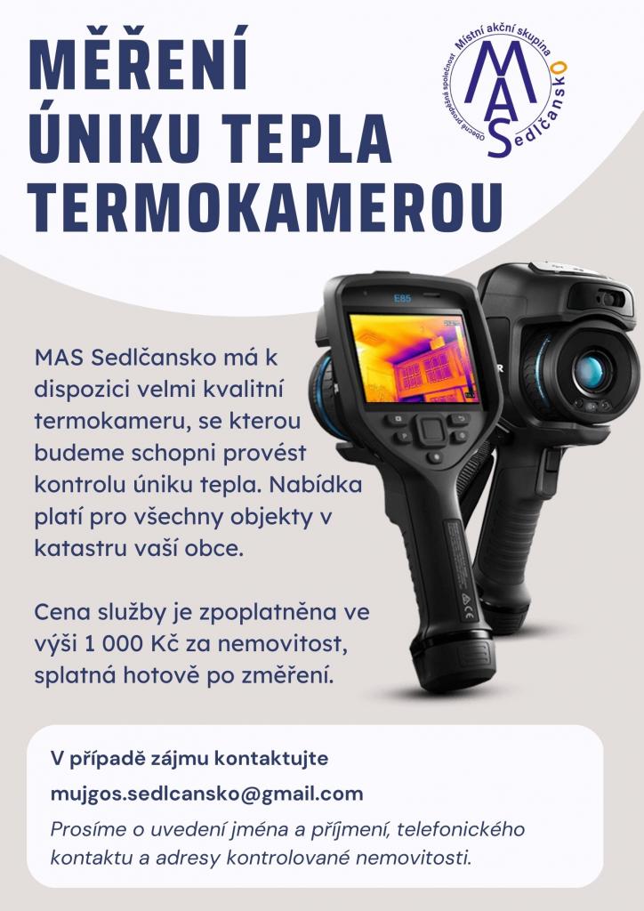 MAS Sedlčansko bude mít k dispozici termokameru a jsou schopni přijet na místo o provést kontrolu úniku tepla. Nabídka platí pro všechny objekty ve Zduchovicích i Žebrákově.
