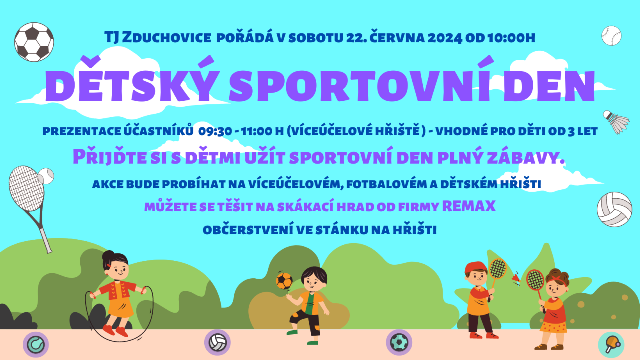 Sportovní zábavné odpoledne pro děti, vhodné od 3 let. Prezentace od 09:30 do 11:00 h na víceúčelovém hřišti.
